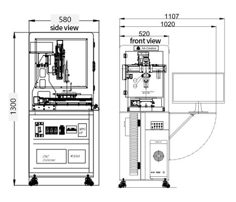 1. Machine volume: 520mm×580mm×1300mm(H)