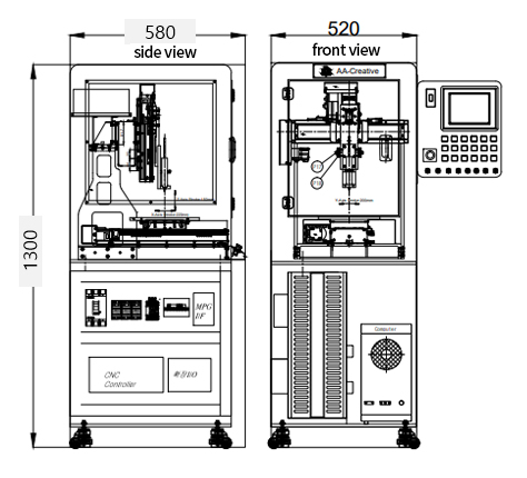 1. Machine volume: 520mm×580mm×1300mm(H)